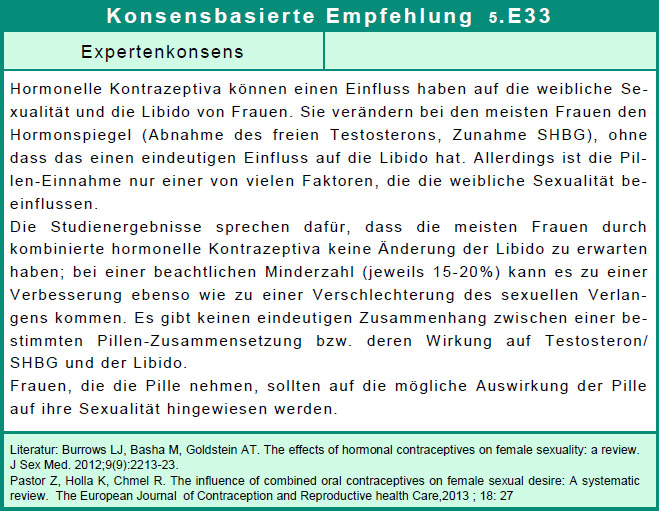 Hormonelle Kontrazeption und Libido – das sagt die S3-Leitlinie (Kap. 5.7)1: