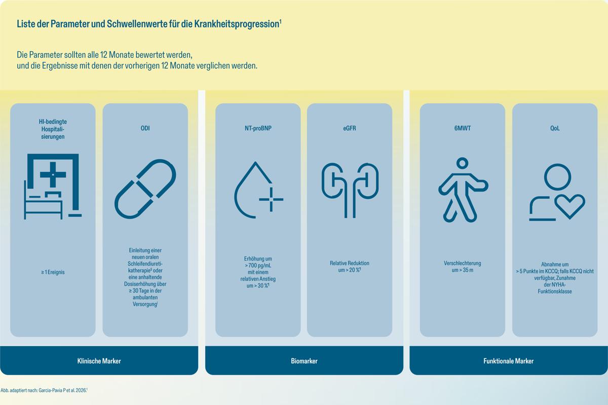 ‡ Die Krankheit galt als stabil, wenn die Kriterien für eine Progression nicht erfüllt wurden (Verschlechterung sowohl von NT proBNP als auch ODI).5